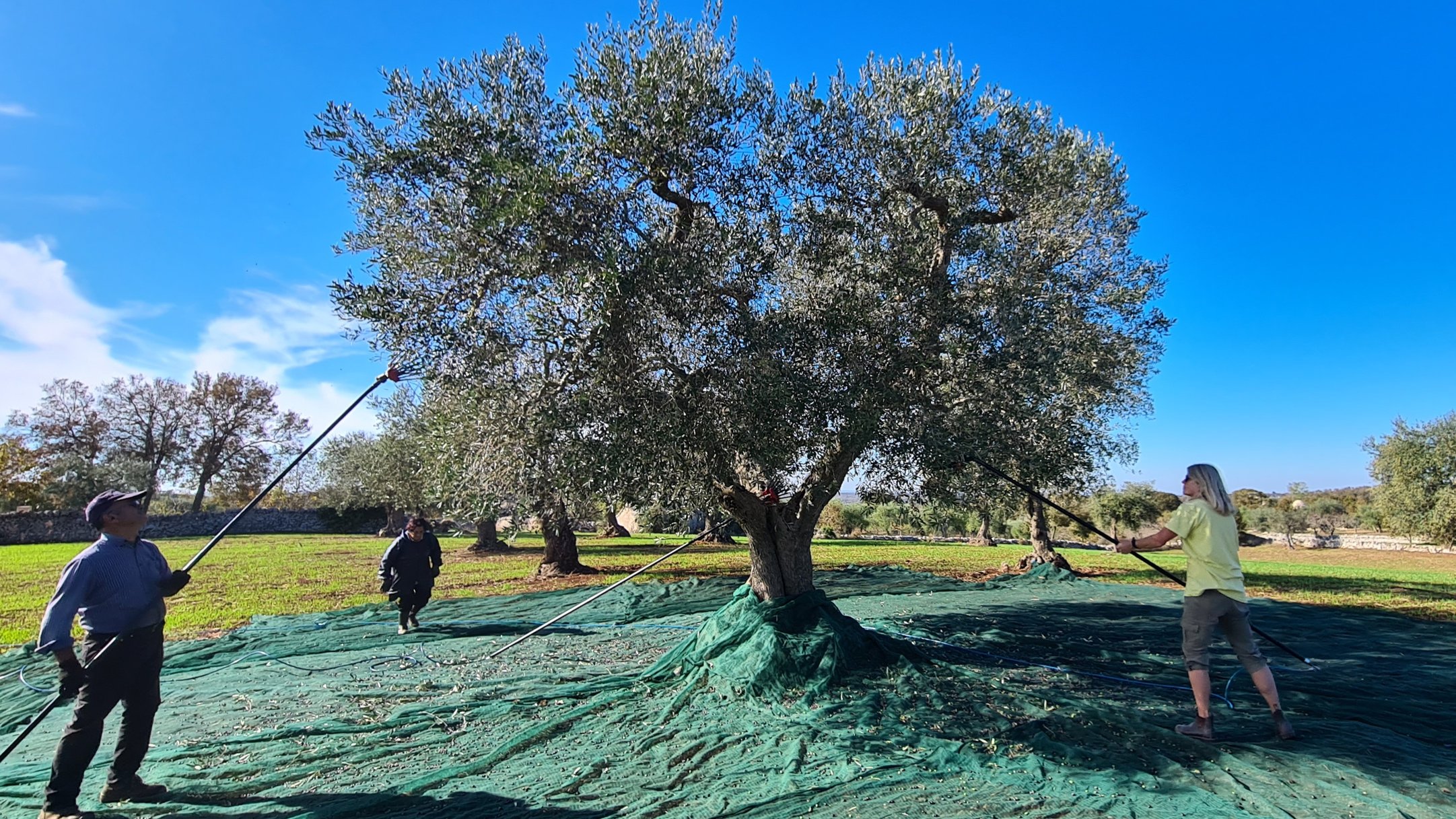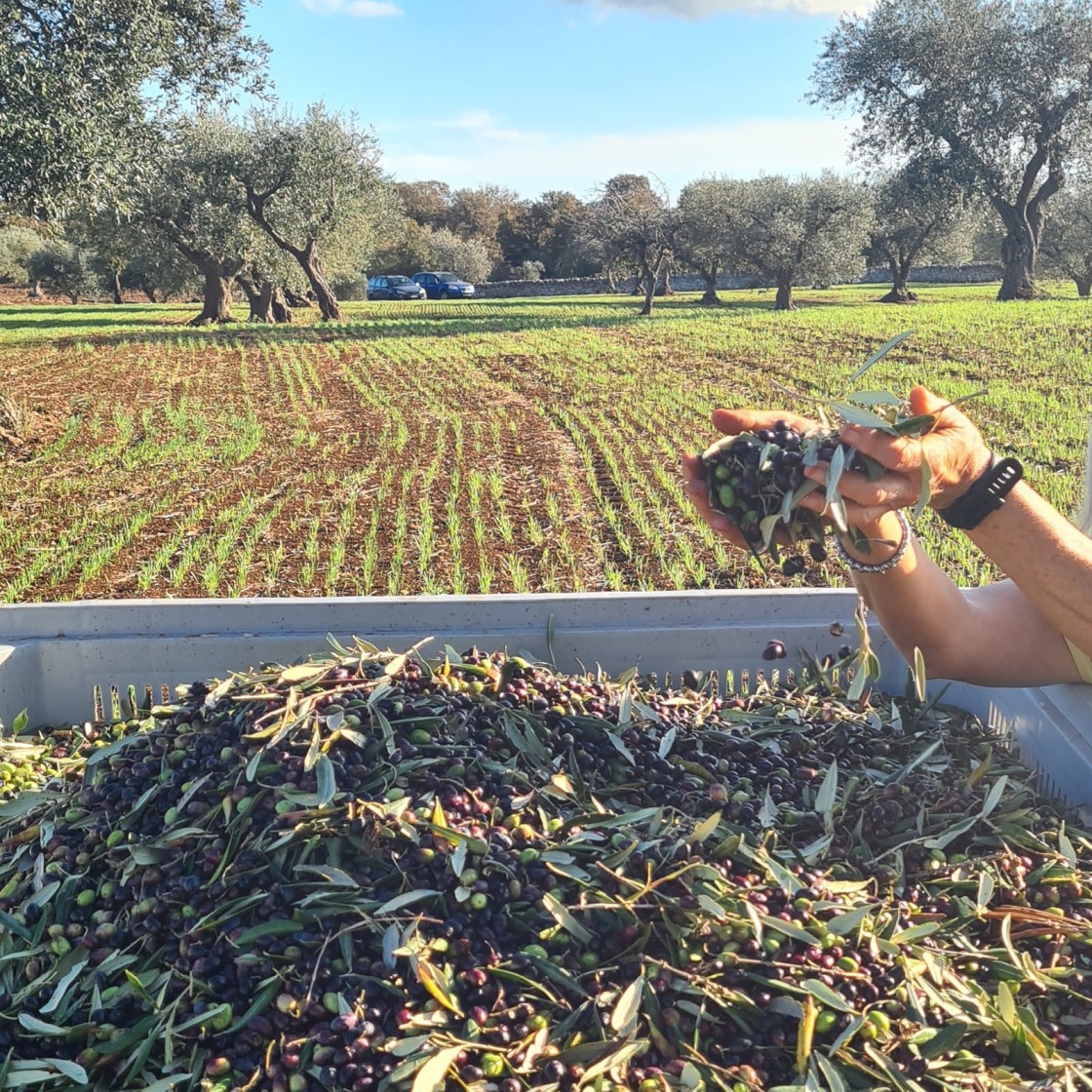 Our olive oil is produced using traditional meticulous methods. Every Autumn the olives are hand-harvested with the help of family and friends. After harvesting, the fruit is taken to our local “frantoio” in Alberobello, where it immediately undergoes the cleaning process. Then, the mechanical cold-pressing starts, only the first press is used from every harvest.